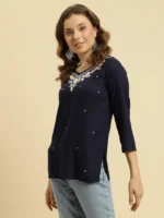 Look ethereal in this Aari work Kurti, freshly crafted in the lightness and comfy feel of cotton.
