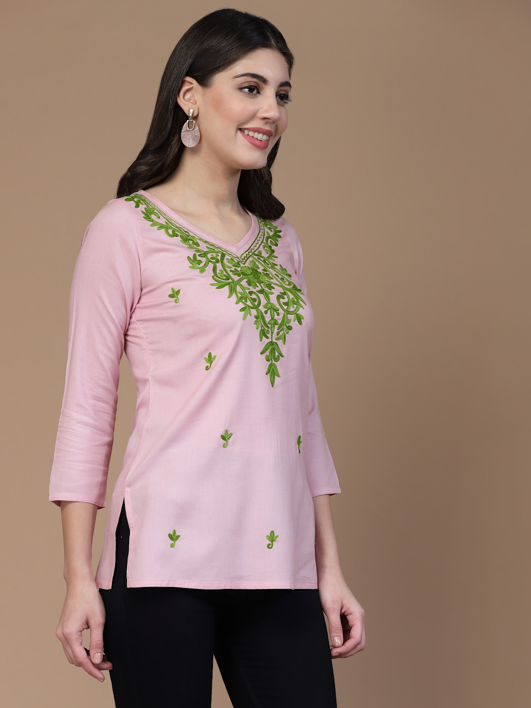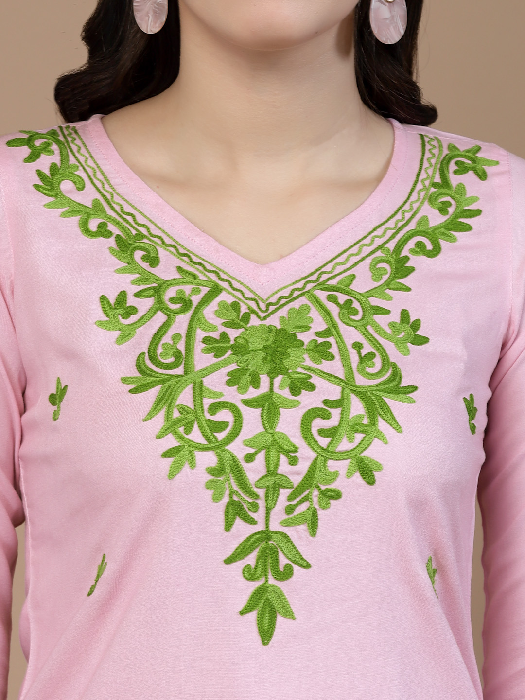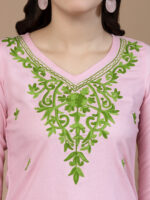 - Embroidery: Kashmiri Aari Using Green Color Cotton Thread