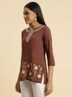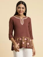 Hiba Maroon Self Embroidered Short Kurti ₹400.00