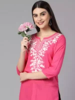 Home Short Kurtis Pink Kashmiri Short Kurti