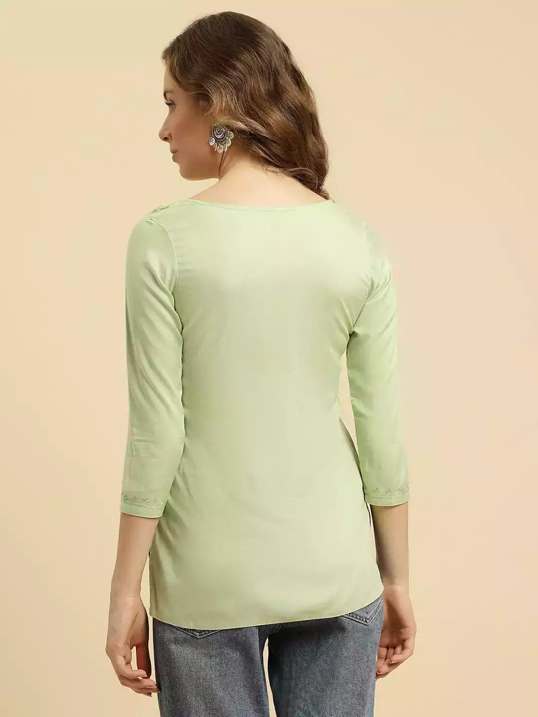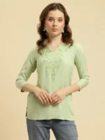 Look ethereal in this Aari work Kurti, freshly crafted in the lightness and comfy feel of cotton.