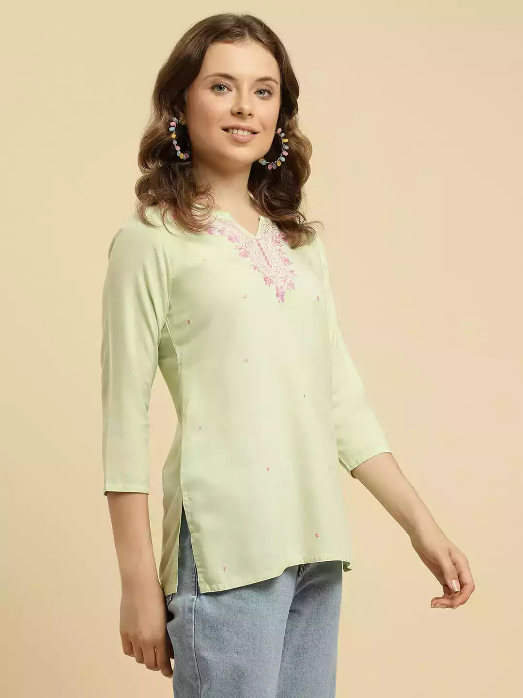 Home Short Kurtis Pista Green Pashmina Work Short Kurti