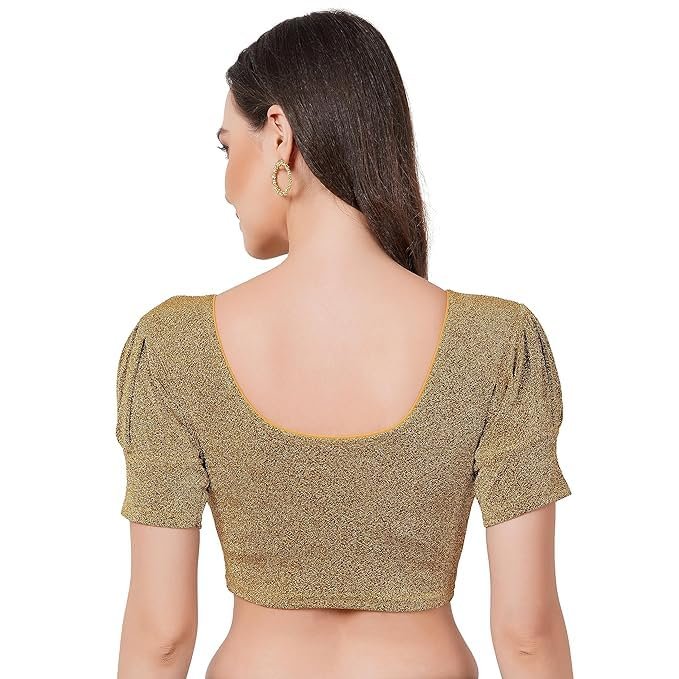 Readymade Shining Lycra Stretchable Round Neck Half Sleeve Blouses || Womens Mettalic Stretchable Readymade Blouses