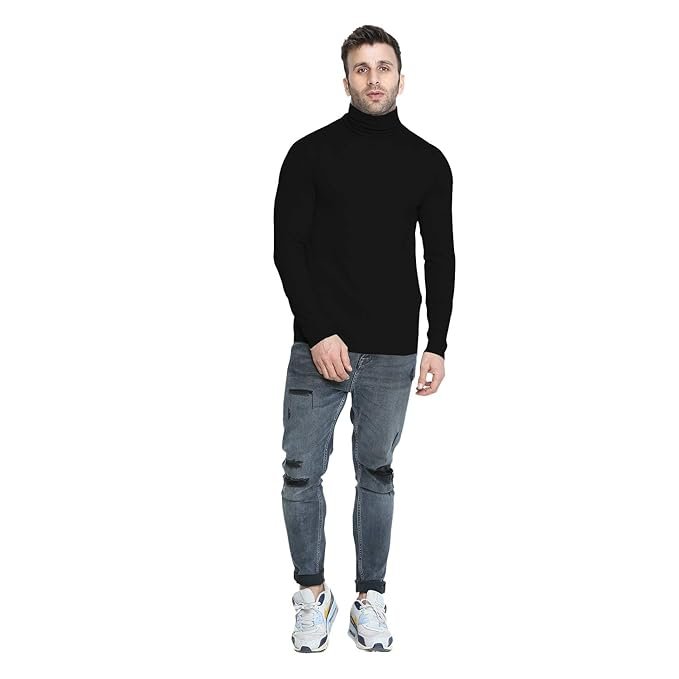 Winter Wear Cotton Plain Full Sleeve Turtle Neck T Shirt for Men
