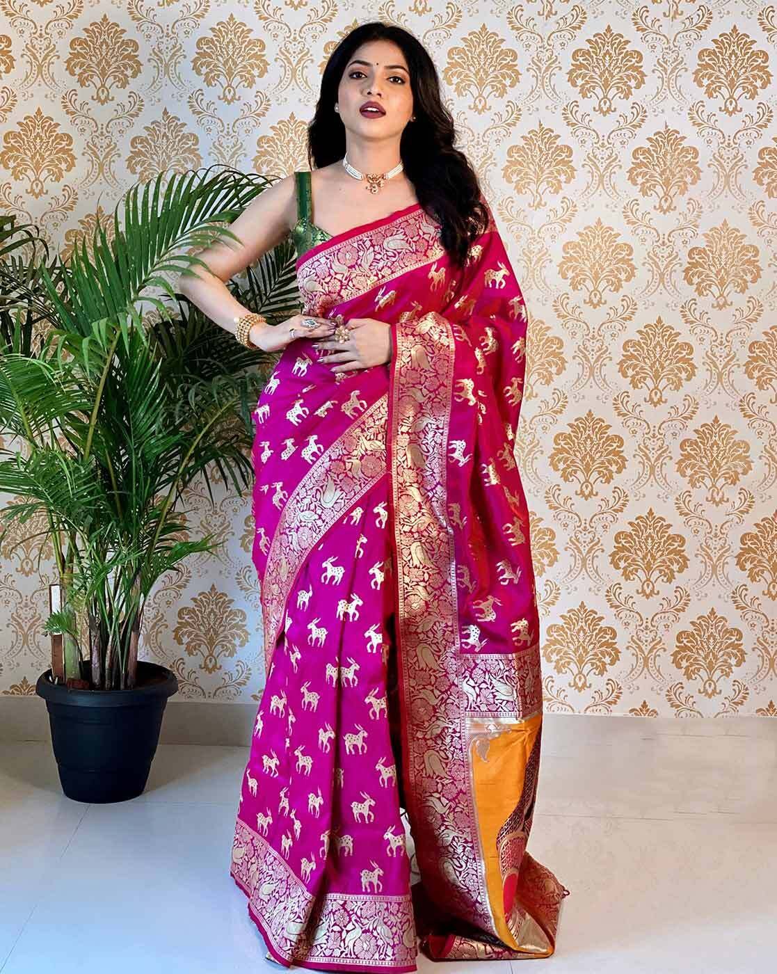 Women Banarasi Saree with Woven Motifs